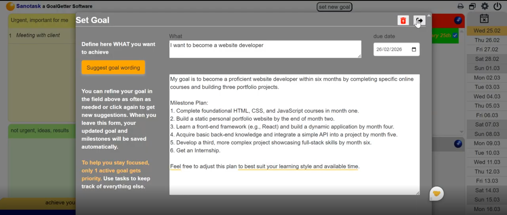 If your goal is not clearly defined, Sanotask can help refine it using AI-powered suggestions.